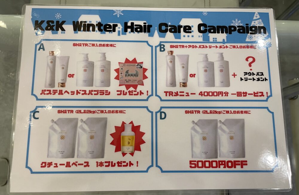 11月と12月にコタ商品だけのキャンペーンをいたします シャンプーとトリートメントをセットで 購入いただくとお得になるキャンペーンです
