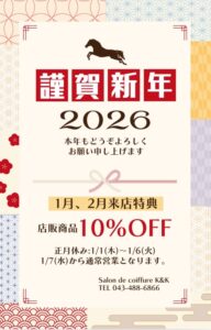 1月と2月に商品10%offキャンペーンをしますので 気になる商品がある方はお買い求めくださいね! 尚新規のお客様は対象外にさせていただきます